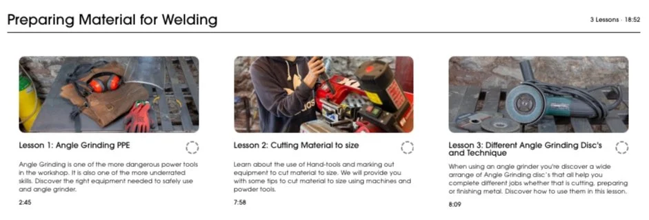 We’ve created a comprehensive course with a clearly formatted curriculum. That includes; video lessons and demonstrations. Practical exercises, downloadable material and equipment lists that will guide you from Novice to Competent MIG welder.